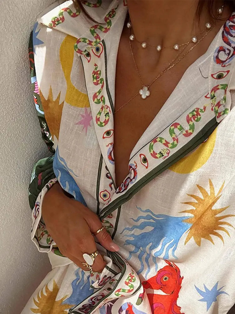 Avec son imprimé poétique et sa coupe fluide, il est idéal pour les matinées ensoleillées, les après-midis pieds nus et les longues soirées d’été.